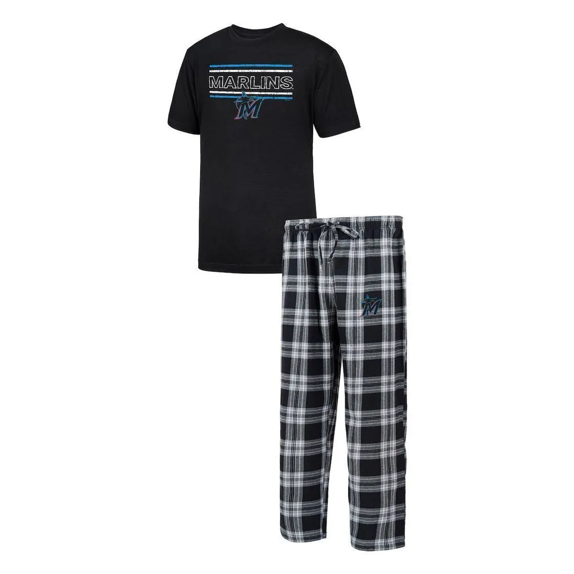 - Rest comfortably knowing your Miami Marlins are adding a tally to the win column with this Badge T-shirt and pants Sleep set from Concepts Sport. Bold Miami Marlins graphics on the tee stand out when paired with the plaid bottoms. Super-soft fabric allows you to dream of team victories over and over again.