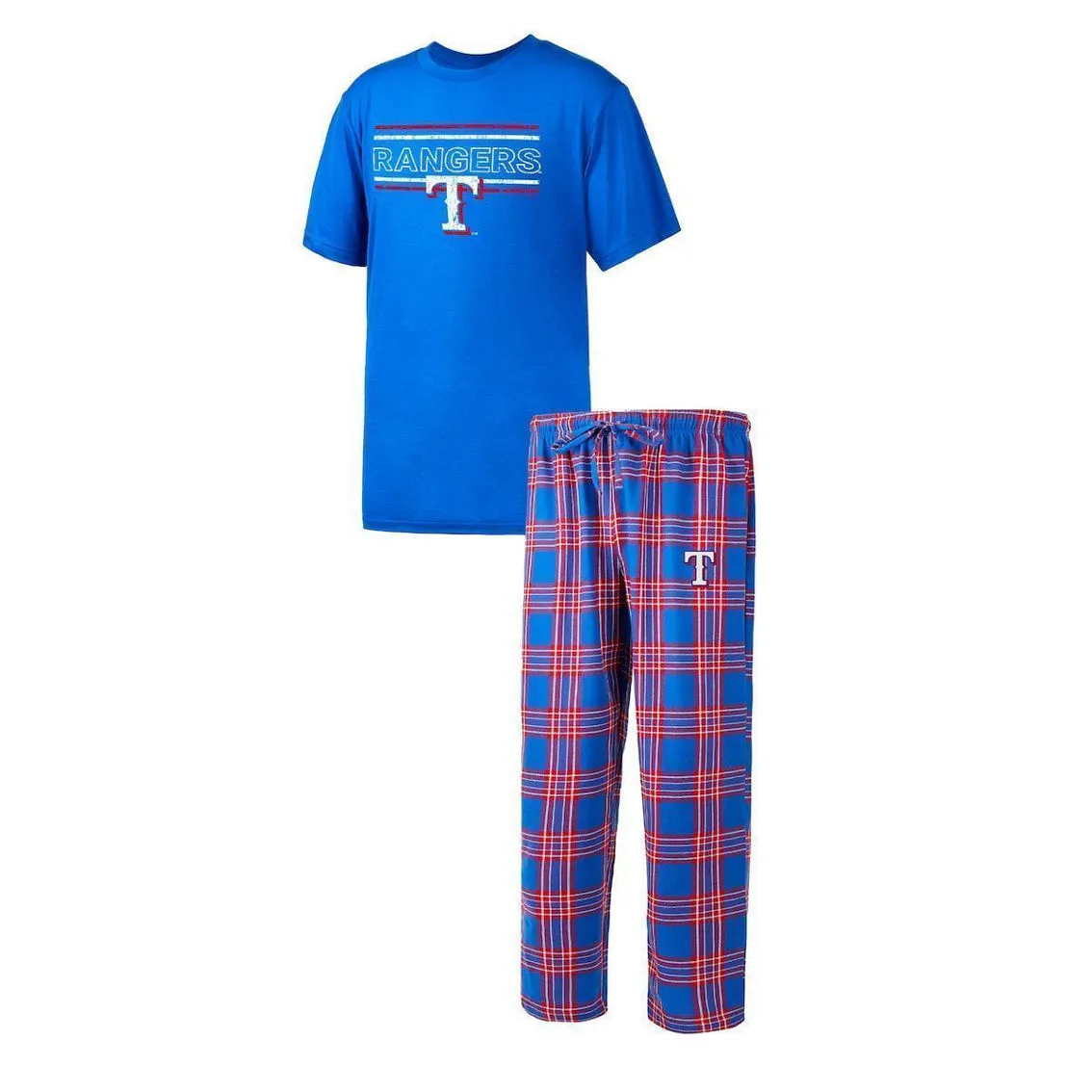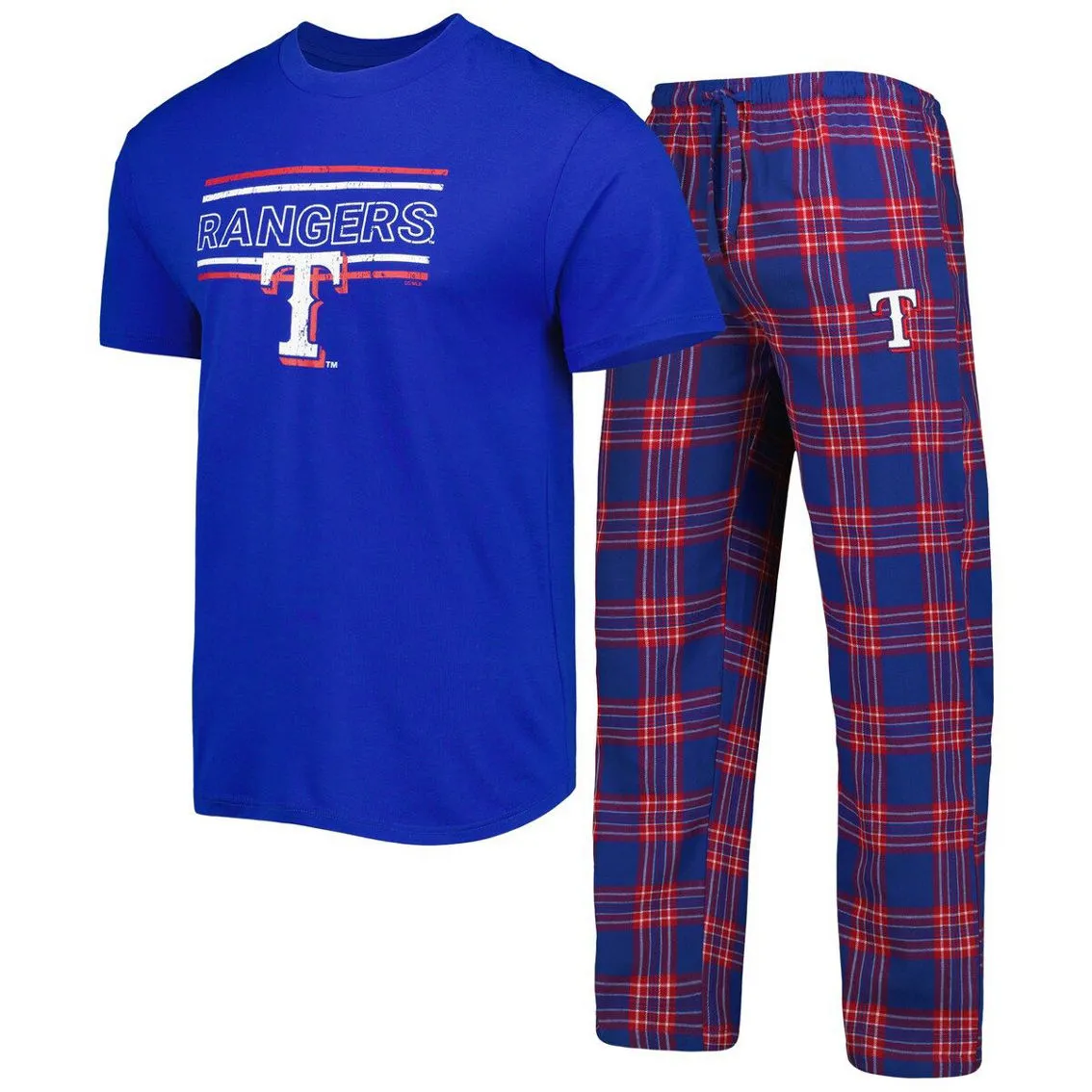 - Rest comfortably knowing your Texas Rangers are adding a tally to the win column with this Badge T-shirt and pants Sleep set from Concepts Sport. Bold Texas Rangers graphics on the tee stand out when paired with the plaid bottoms. Super-soft fabric allows you to dream of team victories over and over again.