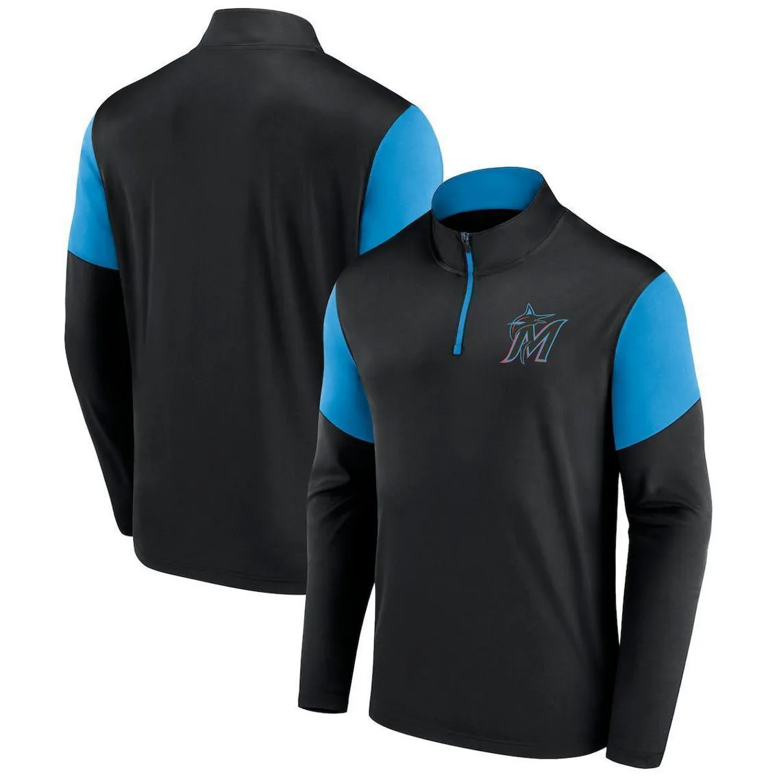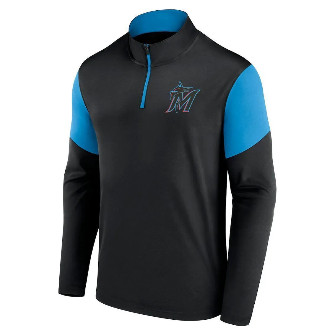 Fanatics Branded Men's Black/Blue Miami Marlins Primary Logo Quarter-Zip Top