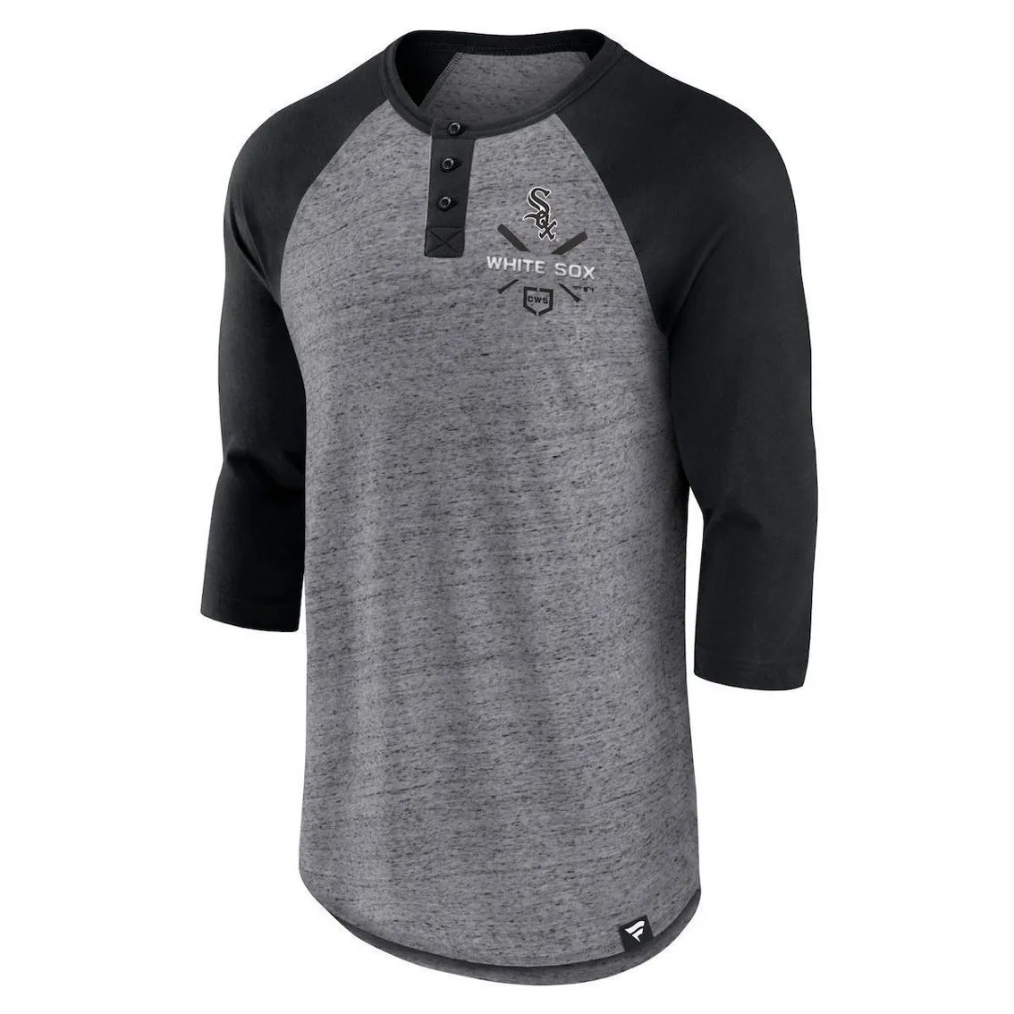 Fanatics Branded Men's Heathered Gray/Black Chicago White Sox Iconic Above Heat Speckled Raglan Henley 3/4 Sleeve T-Shirt