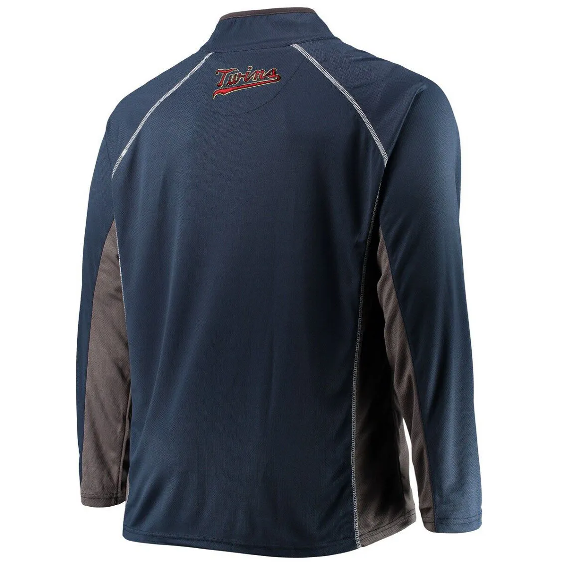 Fanatics Branded Men's Navy/Charcoal Minnesota Twins Big & Tall Pebble Raglan Quarter-Zip Jacket