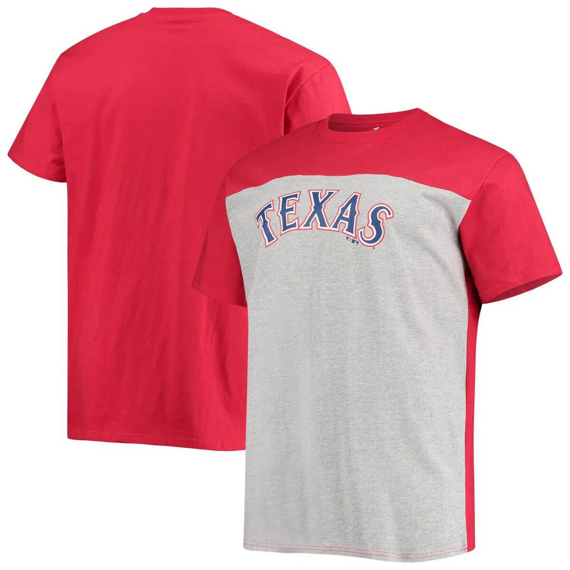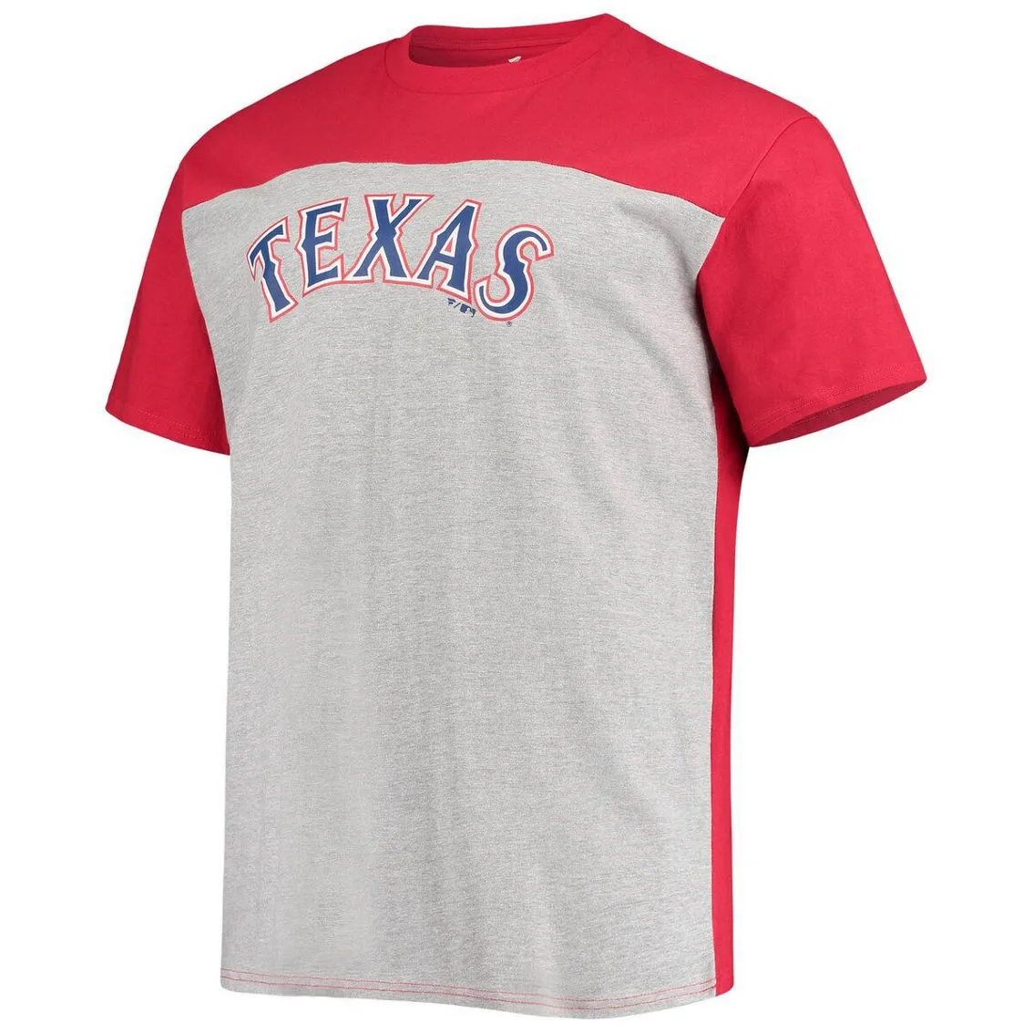 Fanatics Branded Men's Red/Heathered Gray Texas Rangers Big & Tall Colorblock T-Shirt