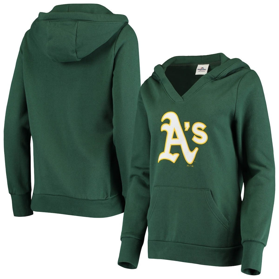 - When the weather cools down, keep your Oakland Athletics spirit heated up in this Logo V-Neck Pullover Hoodie from Fanatics Branded. It features authentic Oakland Athletics graphics that will put your favorite team in view. The soft material will also make this outerwear comfortable to sport all day.