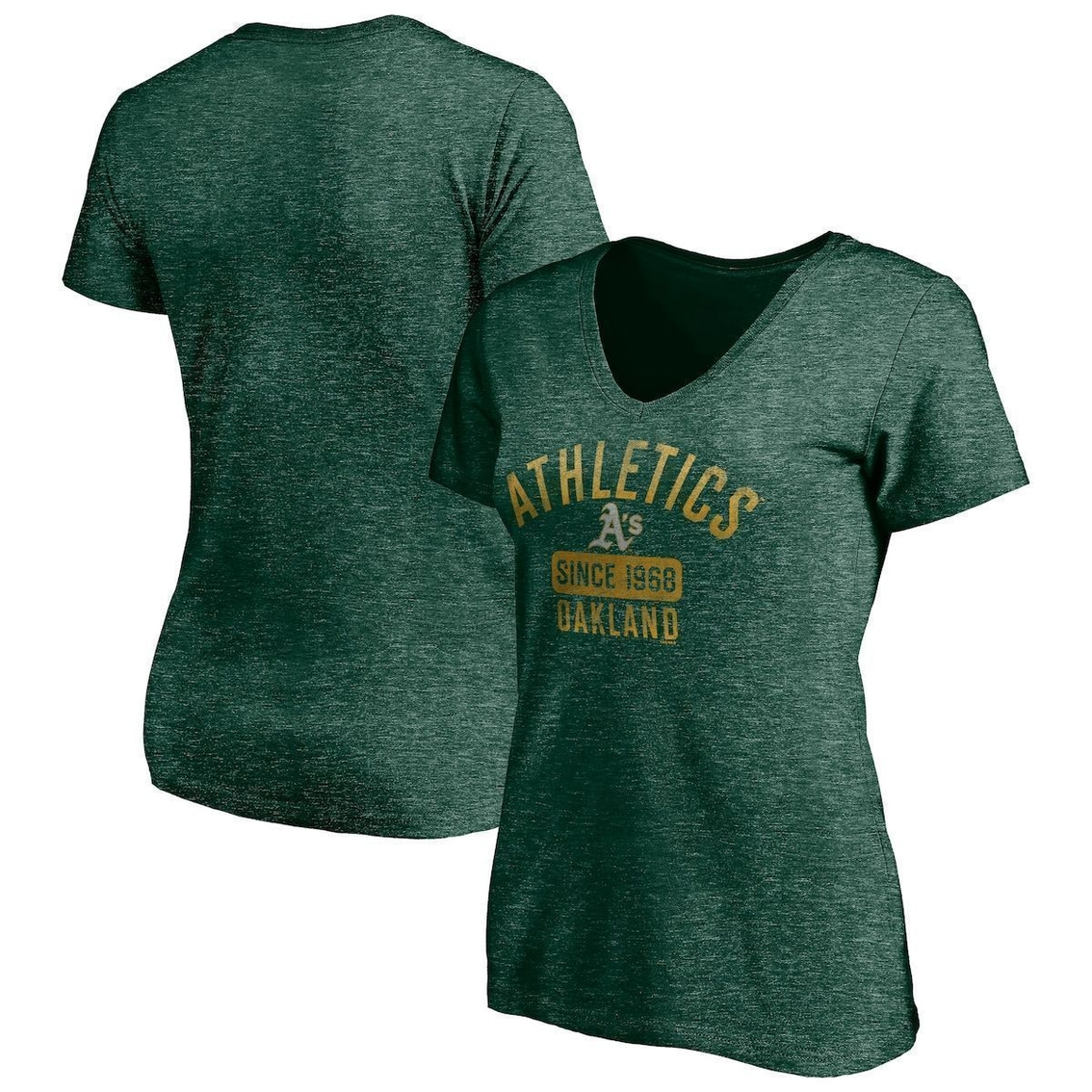 Fanatics Branded Women's Heathered Green Oakland Athletics Old Time Favorite V-Neck T-Shirt