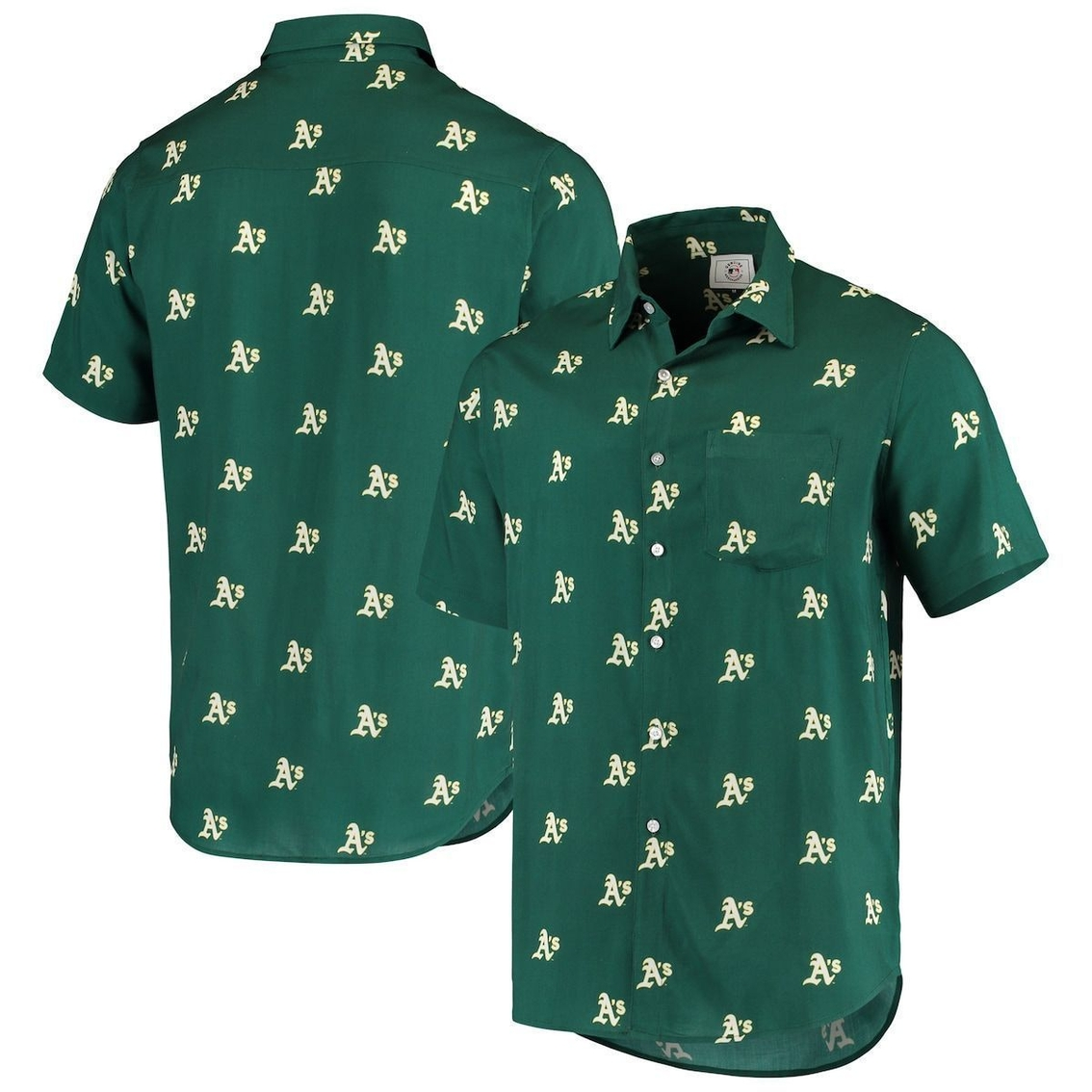 - Whether you’re planning to take in a game, hit the pool with friends or take a weekend off, this is the perfect top for you! Oakland Athletics graphics cover every inch of this awesome Mini Print Logo Button-up shirt and a perfect pocket sits at the left chest. With an exciting Oakland Athletics look like this, there’s nothing you can’t do!