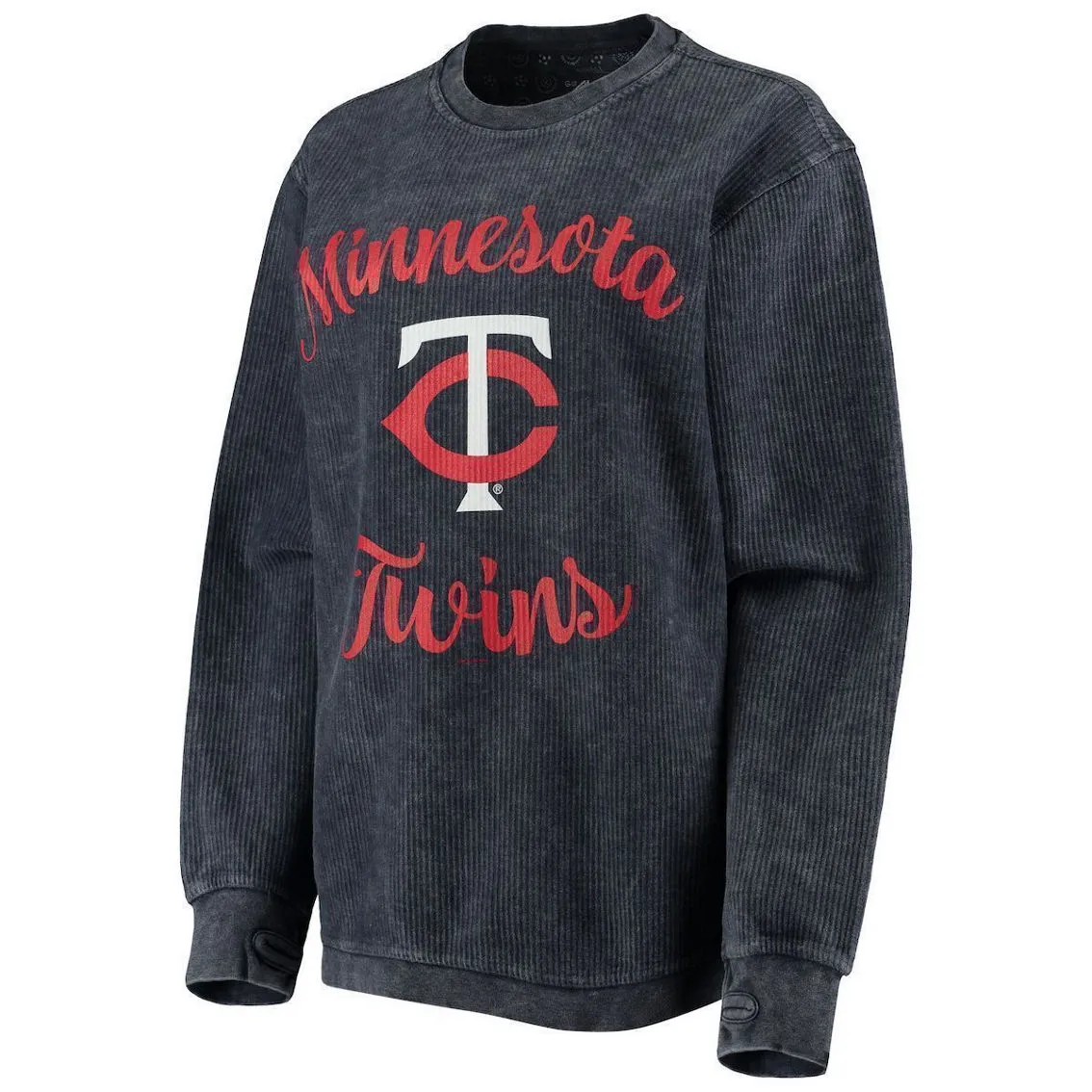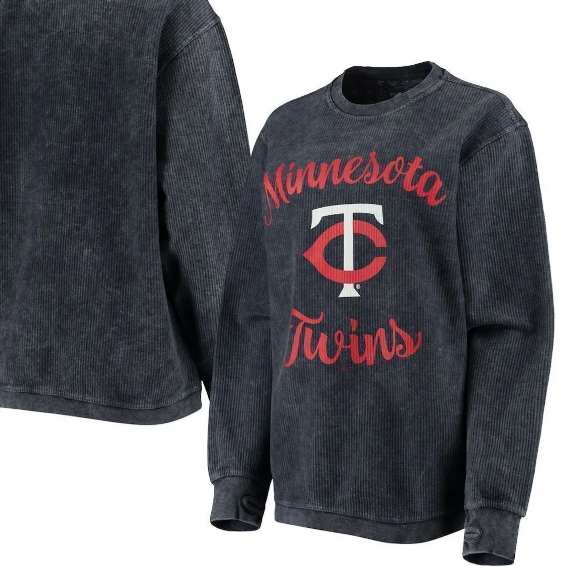 - You don’t ever have to worry about covering up your festive game day get-up when you can just add this Script Comfy Cord pullover sweatshirt from G-III 4Her by Carl Banks on top! It features crisp Minnesota Twins graphics and is made from lightweight material, so it’s easy to bring with you on-the-go. Every time you slip this fun sweatshirt on, you’ll send good vibes toward your favorite team!