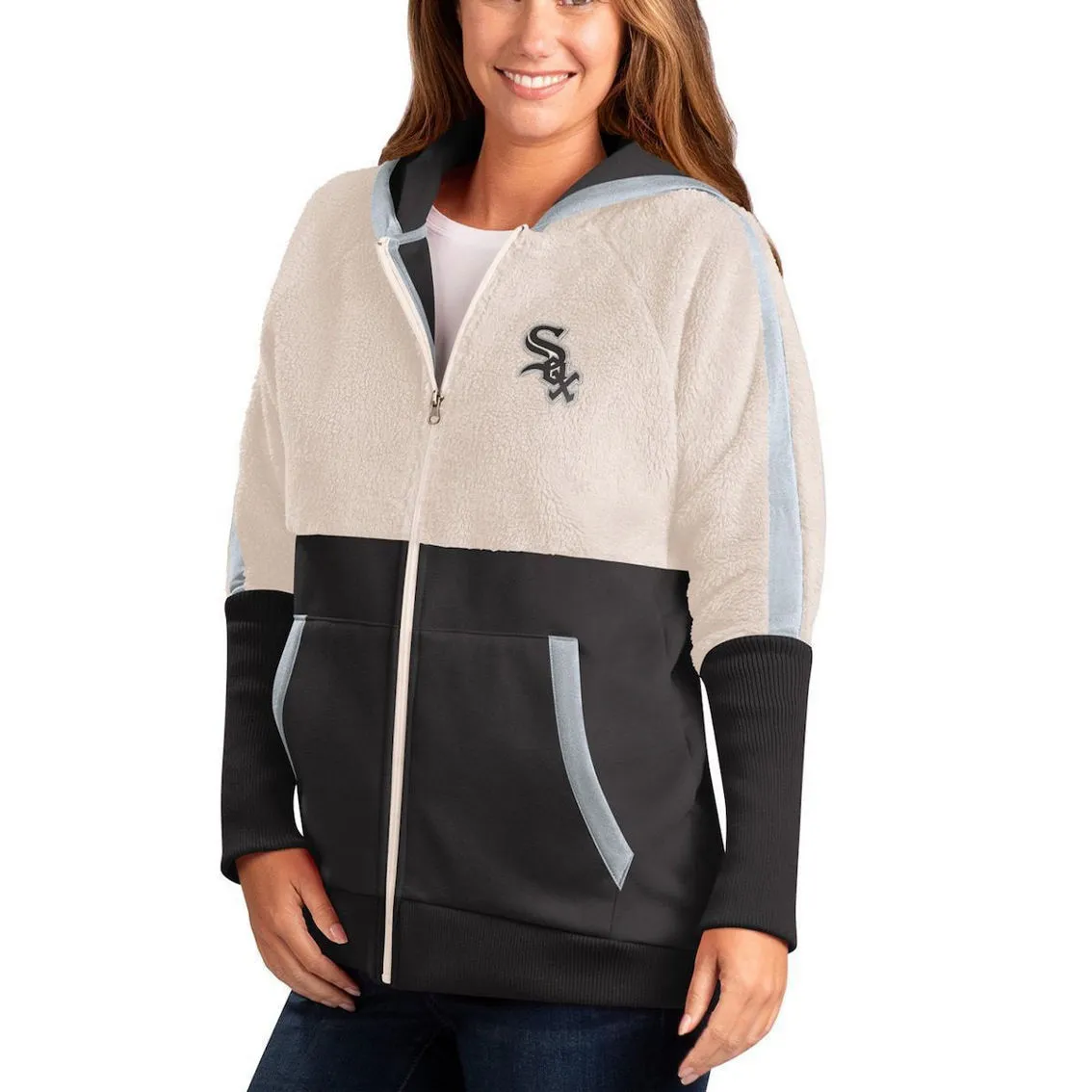 G-III 4Her By Carl Banks Women's Oatmeal/Black Chicago White Sox Shuffle It Raglan Full-Zip Hoodie