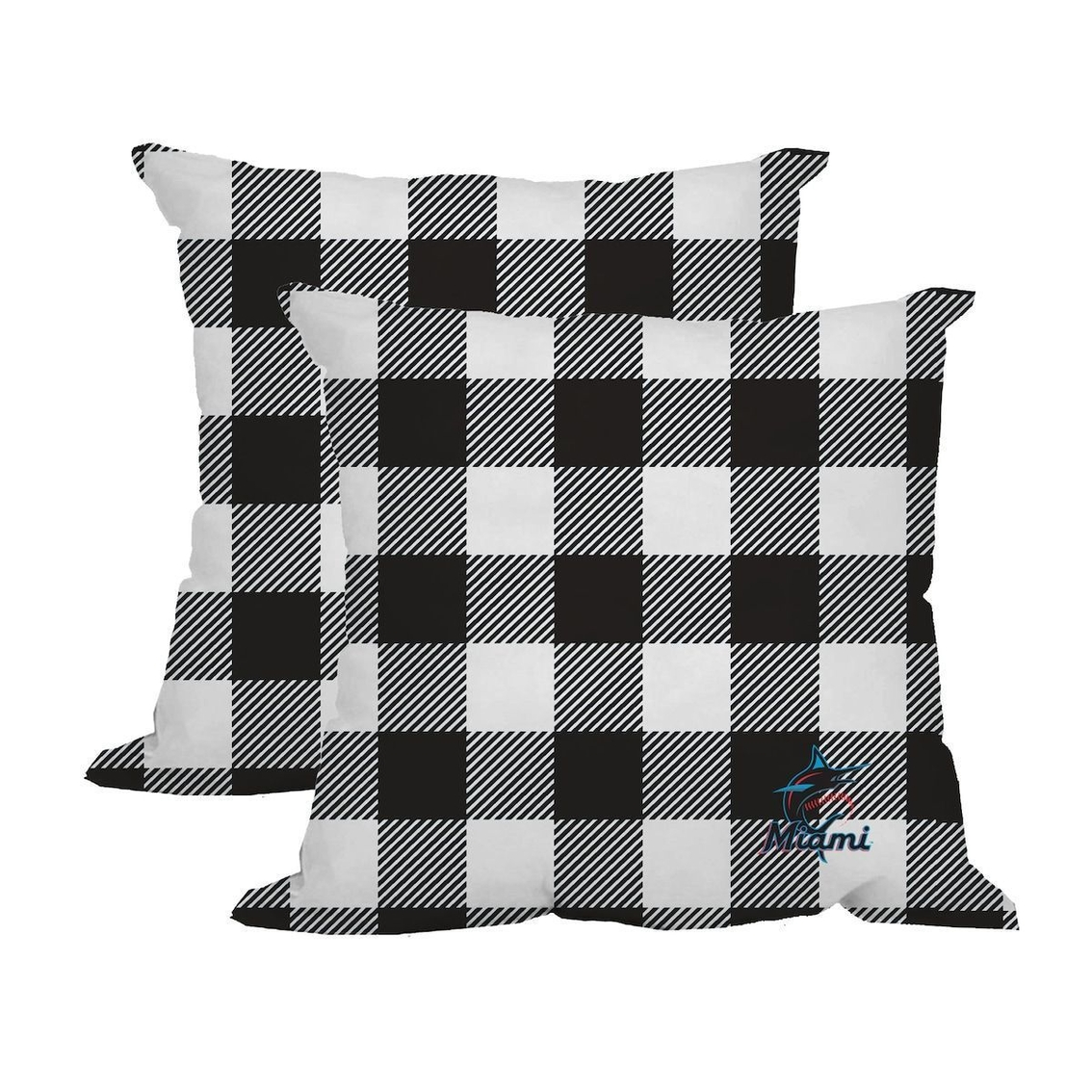 Logo Brands Miami Marlins 2-Pack Buffalo Check Plaid Outdoor Pillow Set