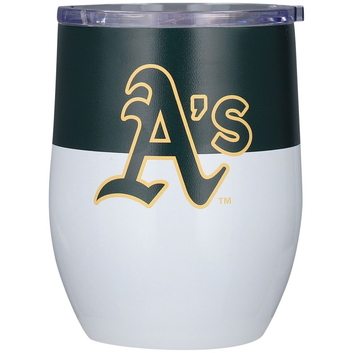 - Keep your drink just the way you like it with this Colorblock Curved tumbler. Designed with stainless steel, vacuum-sealed material, this Oakland Athletics cup helps your game day beverage stay ice-cold or piping hot for hours. The slider top prevents messes, ensuring you can focus on proudly cheering on your Oakland Athletics.