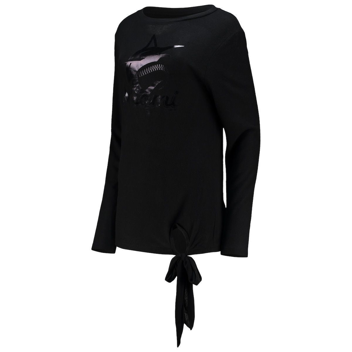 Majestic Threads Women's Threads Black Miami Marlins Hacci Tunic Long Sleeve T-Shirt