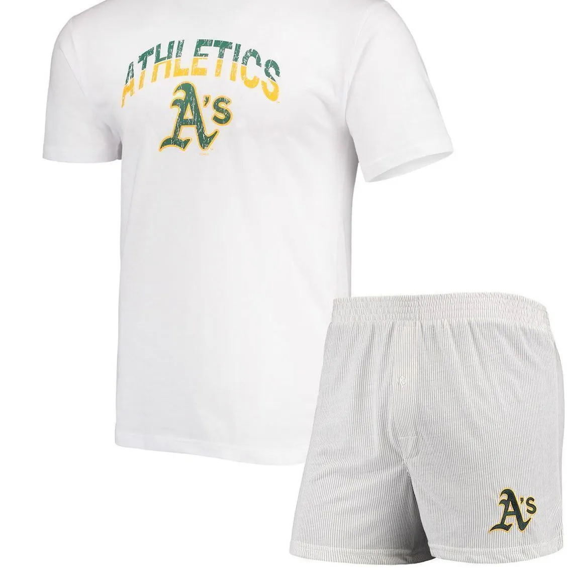 - Head to bed still showing your Oakland Athletics spirit with this Gateway T-shirt and Boxer Shorts sleep set from Concepts Sport. It features printed Oakland Athletics graphics in a two-tone, vintage-looking design across the chest and an embroidered team logo on the boxers. The elastic waistband and soft material will help you drift off comfortably, as well.