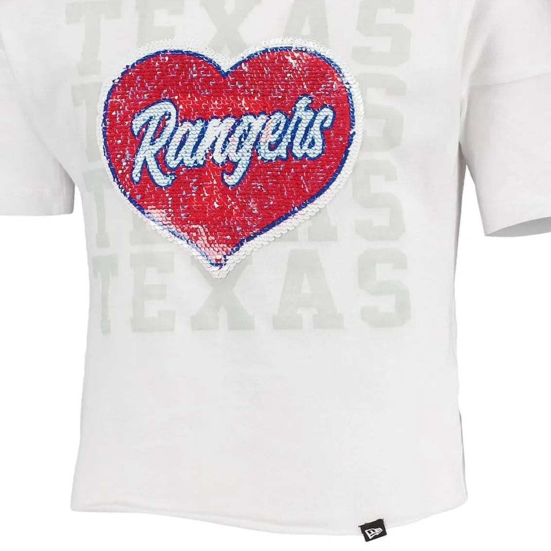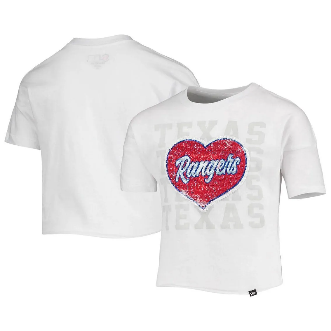 New Era Girls Youth White Texas Rangers Flip Sequin Heart Crop Top