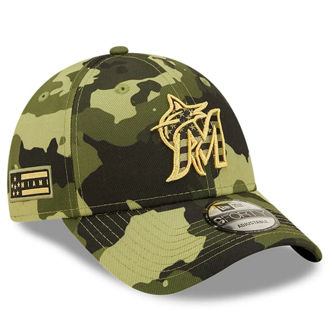 - No one’s a bigger Miami Marlins fan than you, and that’ll be clear when you rock this special 2022 Armed Forces Day 9FORTY Snapback Adjustable Hat from New Era. The spirited camo design and six-star patch on the right side make this a unique addition to your collection and will help you stand out from fellow baseball fans. This special Armed Forces cap will let everyone know your allegiance lies with the Miami Marlins.Major League Baseball is a proud supporter of charitable programs for service members, veterans and military families.