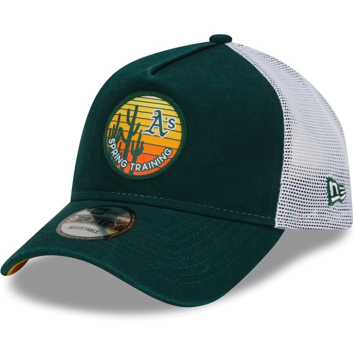 - This Oakland Athletics Sunset Trucker 9FORTY hat gives you a scenic look and feel with a touch of fandom. The mesh paneling allows for a nice breezy feeling, while the curved bill keeps you shaded from the sunlight. Complete with an adjustable snapback closure for the perfect fit, this New Era cap features a vibrant Oakland Athletics Spring Training patch on the front panel.