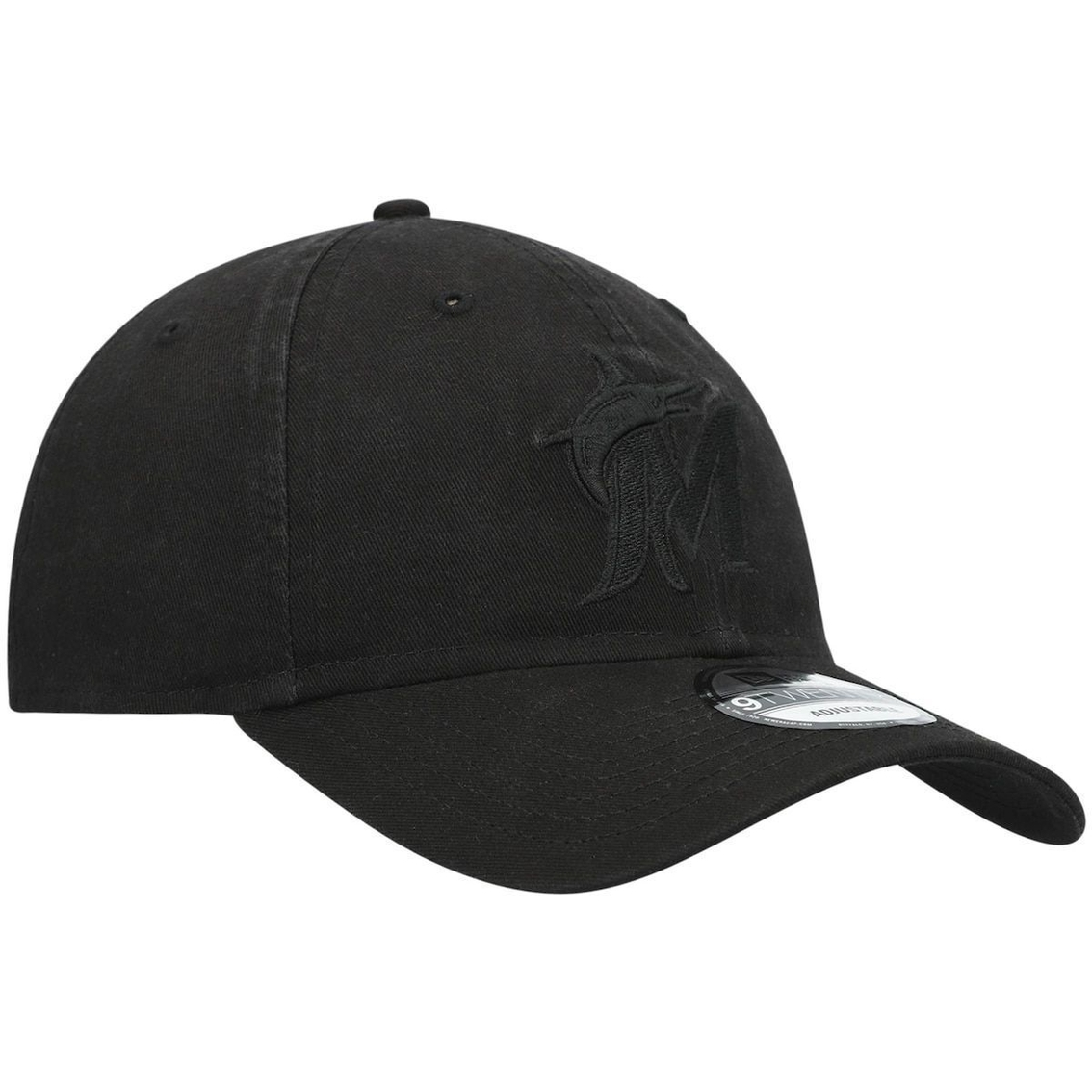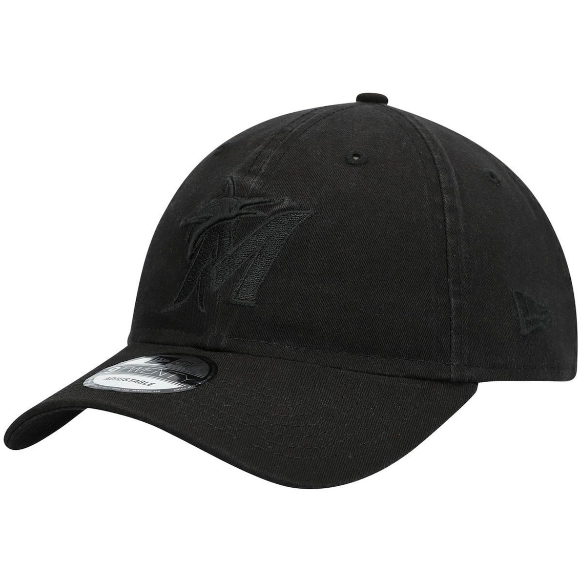 - Show off your love for the Miami Marlins with this Black on Black Core Classic 9TWENTY hat from New Era. Designed with embroidered details and a monochromatic design, this cap is perfect for elevating your game day looks. Best of all, the adjustable strap ensures that just-right feel as you cheer on the Miami Marlins.