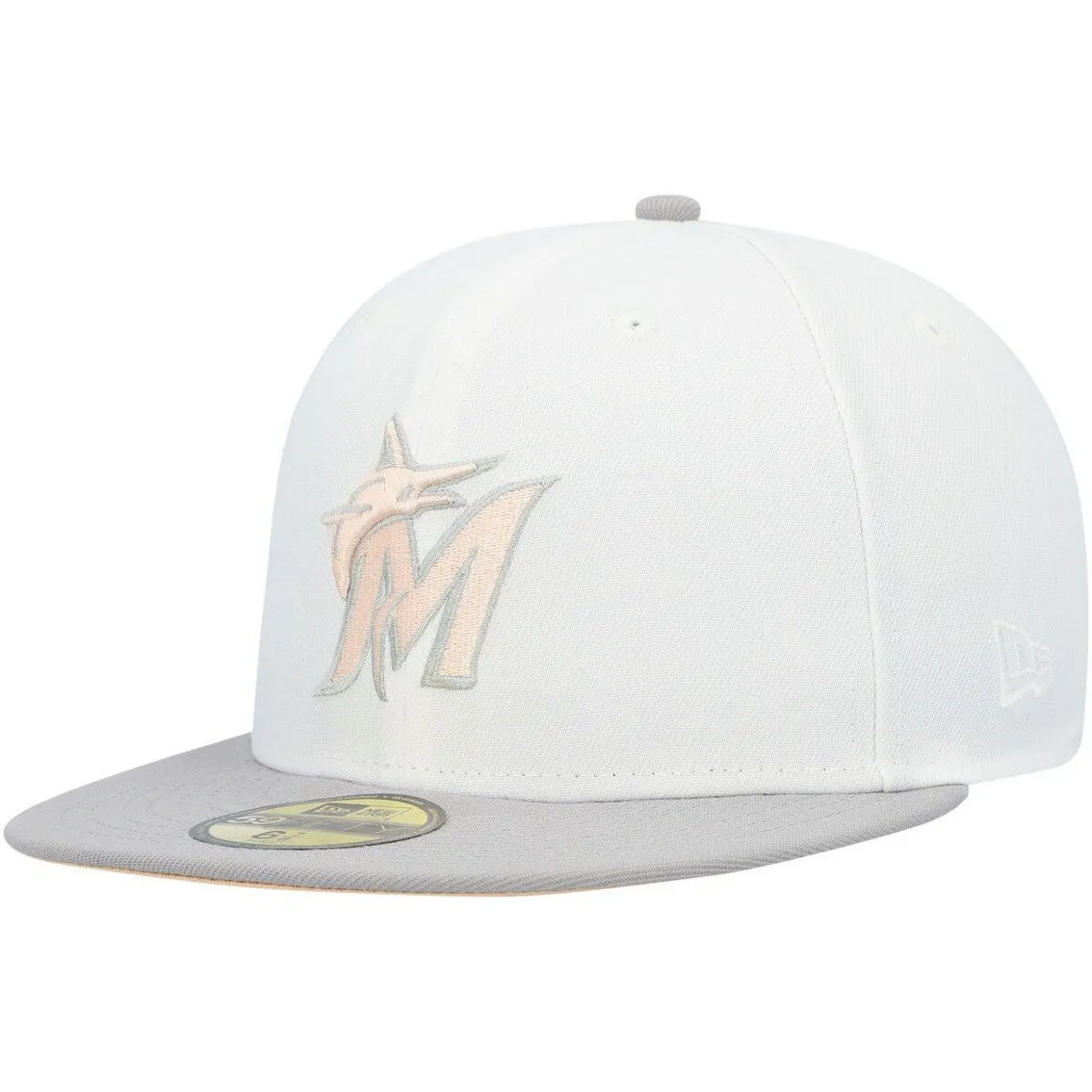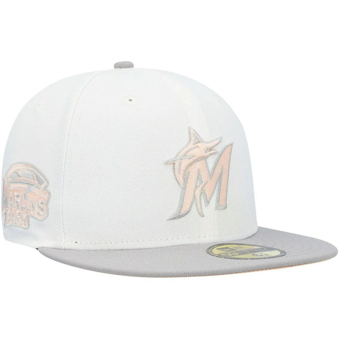 New Era Men's White/Gray Miami Marlins Marlins Park Side Patch Peach Undervisor 59FIFTY Fitted Hat
