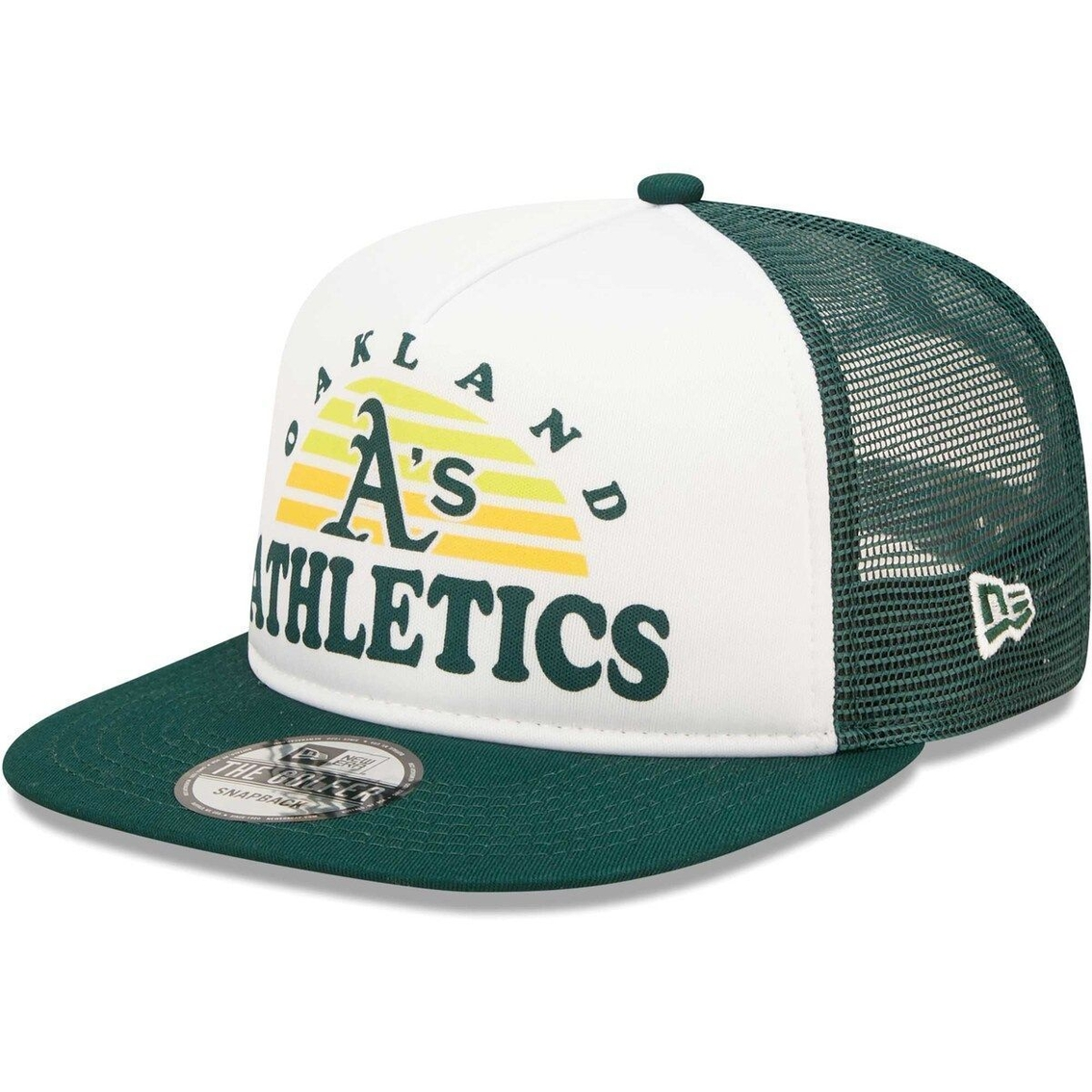 - Showcase your unshakable enthusiasm for the Oakland Athletics when you wear this Gradient trucker 9FIFTY snapback hat from New Era. Its gradient design features vibrant Oakland Athletics graphics to further elevate your fandom. Its snapback closure will also make adjusting the fit quick and easy, while its mesh panels provide a breathable feel that makes all-day wear a breeze.