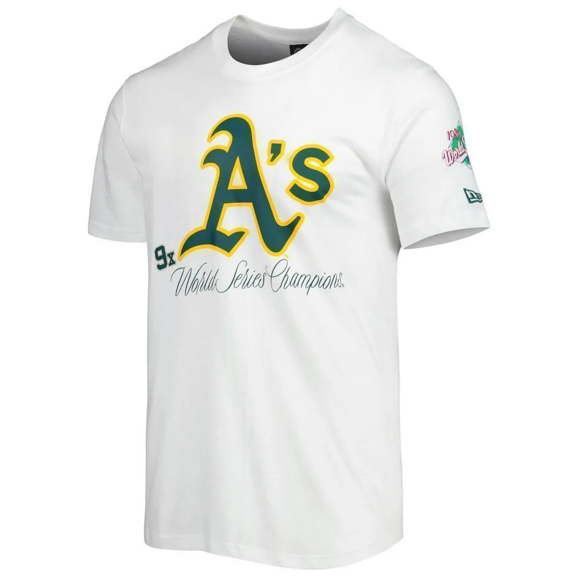 - Remember an amazing moment in Oakland Athletics history with this Historical Championship T-shirt from New Era. It features exciting World Series graphics to help you exhibit your die-hard fandom. This breathable cotton tee is an excellent choice when cheering on the Oakland Athletics.