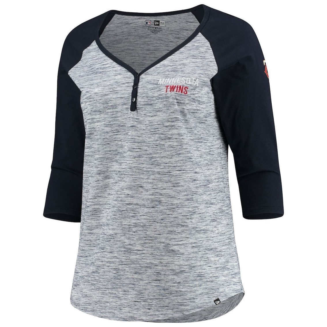 - Stay fashionable as you root for your Minnesota Twins by wearing this 3/4-Sleeve Raglan T-shirt to the next big game. With its alluring Henley design and stylish space dye fabric, this New Era tee features distinct Minnesota Twins graphics on the chest and sleeve, so you can be positive your team is well represented. Cheer louder in this comfy cotton-poly tee.