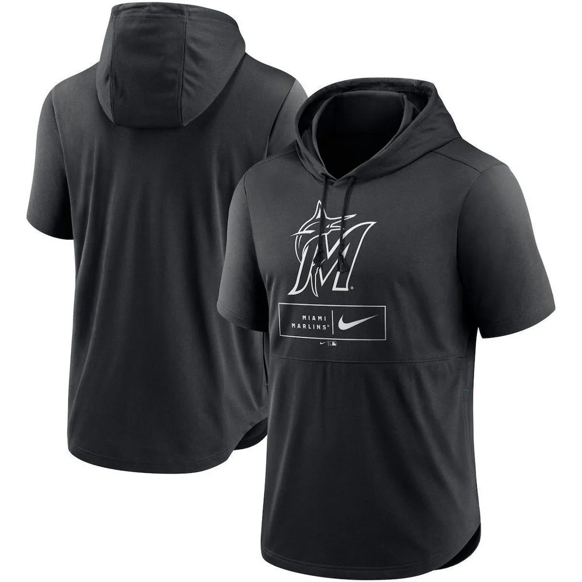 Nike Men's Black Miami Marlins Logo Lockup Performance Short-Sleeved Pullover Hoodie