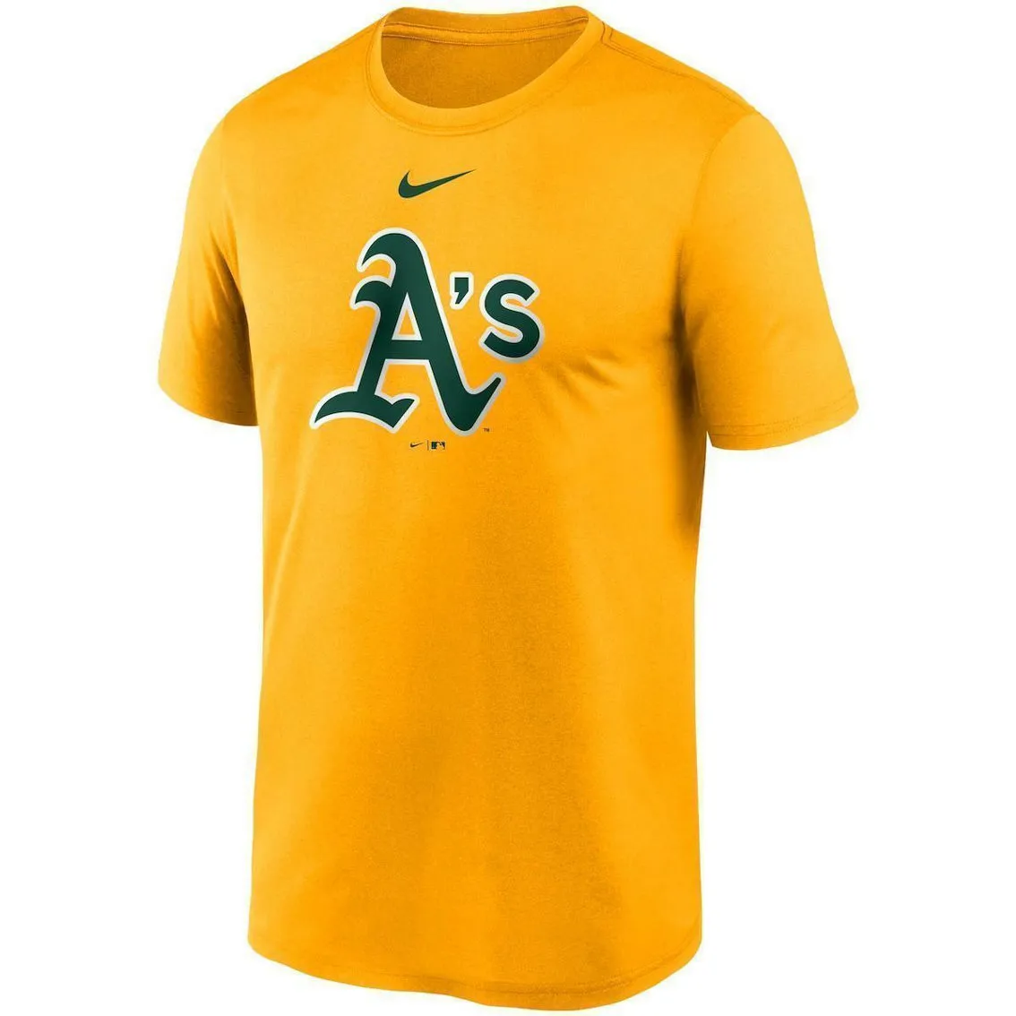 - Active Oakland Athletics fans will immediately notice a difference in their performance when they put on this Large Logo Legend T-shirt from Nike. It’s constructed with Dri-FIT technology to keep its wearer cool and comfortable for longer periods of time. Its crisply detailed graphics will also be sure to shout out the team you love every time you wear it this season.