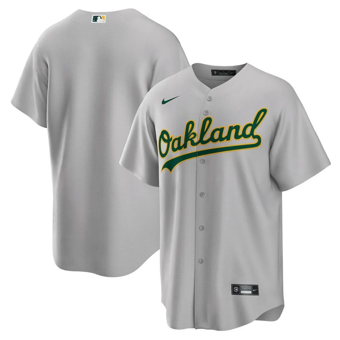 - As the ultimate Oakland Athletics fan, you deserve the same look that your favorite players sport out on the field. This Road Replica Team jersey from Nike brings the team’s official design to your wardrobe for a consistently spirited look on game day. The polyester material and slick Oakland Athletics graphics are just what any fan needs to look and feel their best.