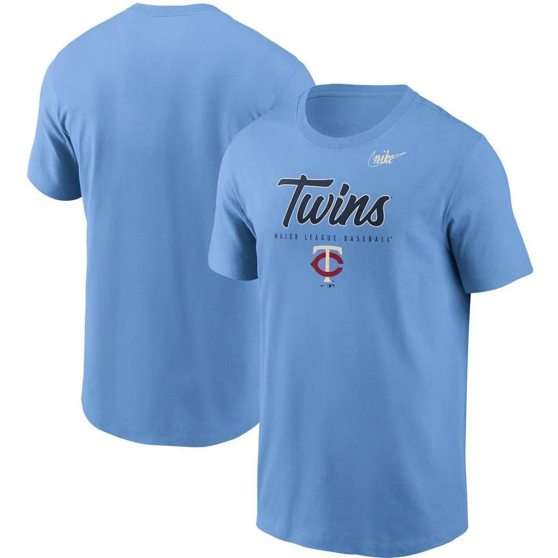 Nike Men's Light Blue Minnesota Twins Cooperstown Collection Wordmark Script Logo T-Shirt