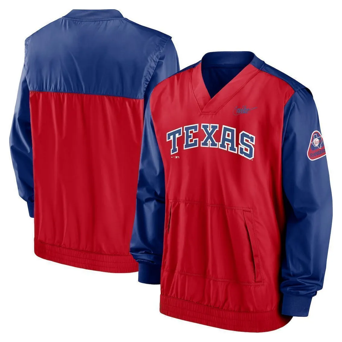 - Add a throwback finish to any look with this Texas Rangers Cooperstown Collection jacket. This Nike pullover features a stylish V-neck design and Texas Rangers graphics across the chest and on the sleeve. On top of that, it offers durable fabric and ventilated back panels, perfect to keep you fresh in any weather.