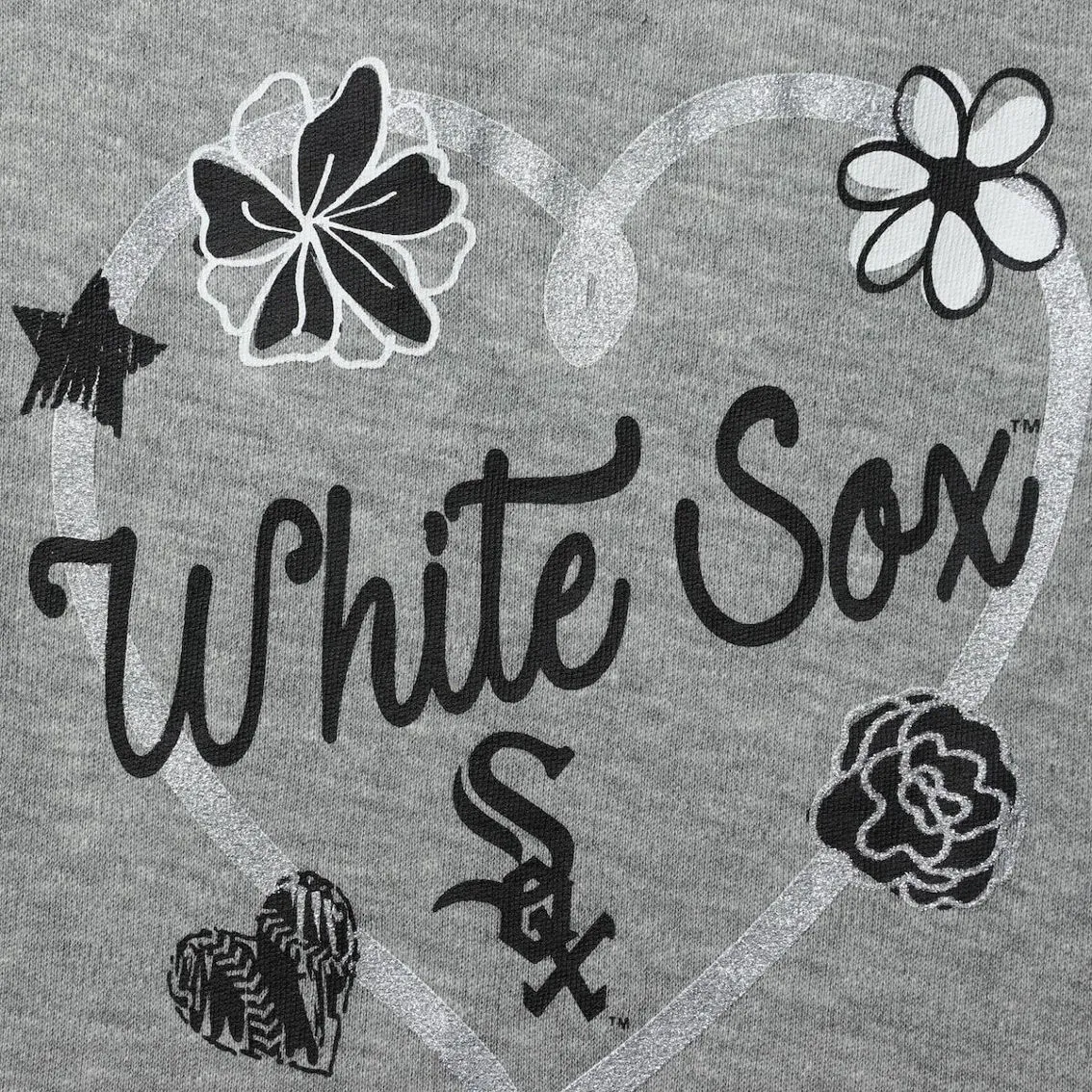 - Screen print graphics with glitter detail