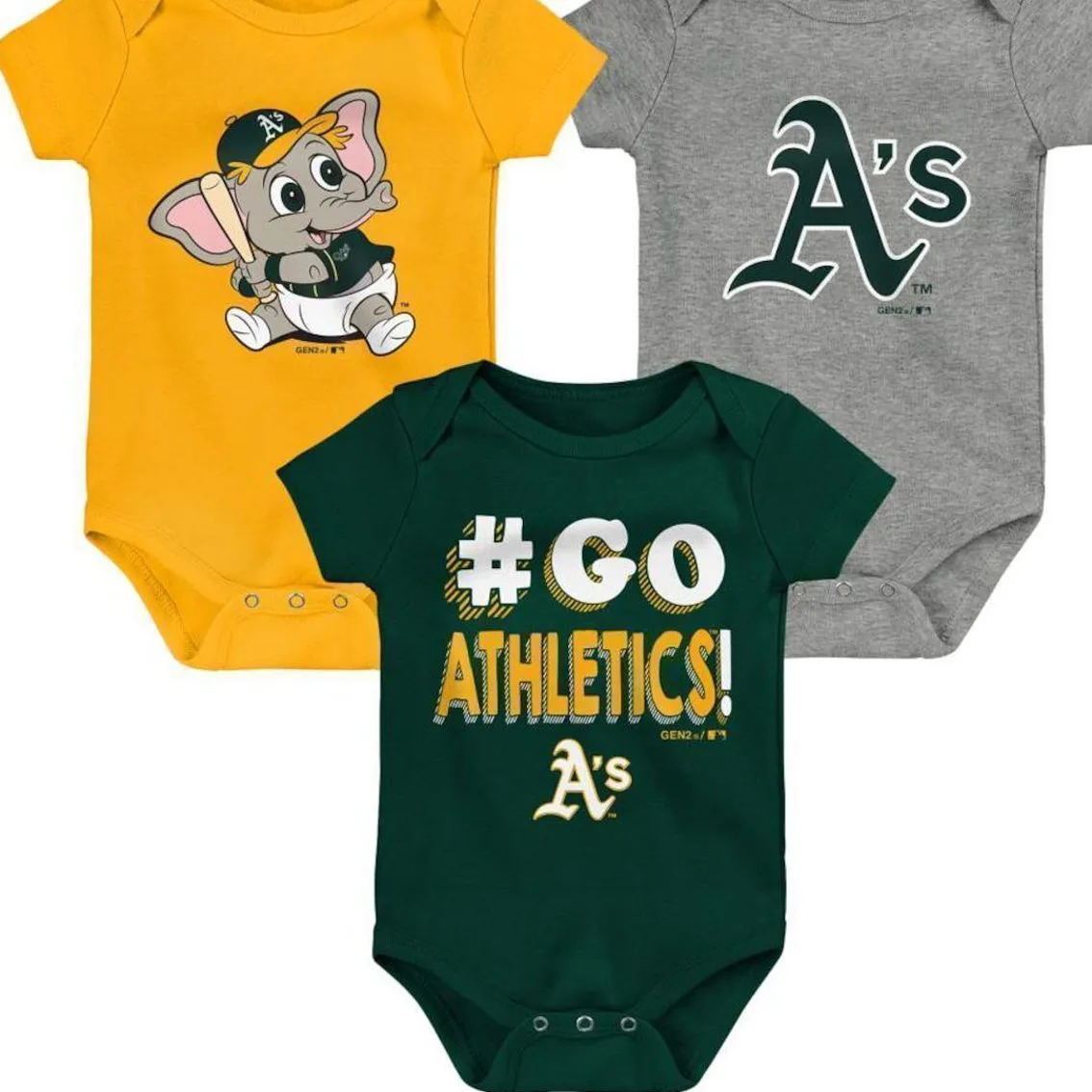 - You’re a loyal Oakland Athletics fan who wants to share their fandom with the newest member of the fan club. You can do just that by getting this Oakland Athletics Born To Win 3-pack bodysuit set. Each of these bodysuits feature crisp Oakland Athletics graphics and have three snaps at the bottom for easy dressing. When your kiddo is wearing any one of these bodysuits, you’ll know the newest fan will also be the cutest fan.