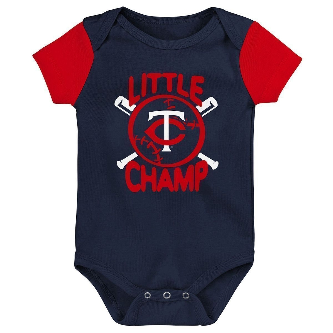- It’s never too soon to welcome your little one into the Minnesota Twins fan club, so greet them with open arms and this charming Little Champ bodysuit, bib and booties set. It features the premiere Minnesota Twins getup: a bodysuit and bib with adorable team graphics and booties to keep their feet warm. The lap-shoulder neckline and three-snap closure make changing easy and give your youngster a cute and comfy way to showcase their growing team fandom.