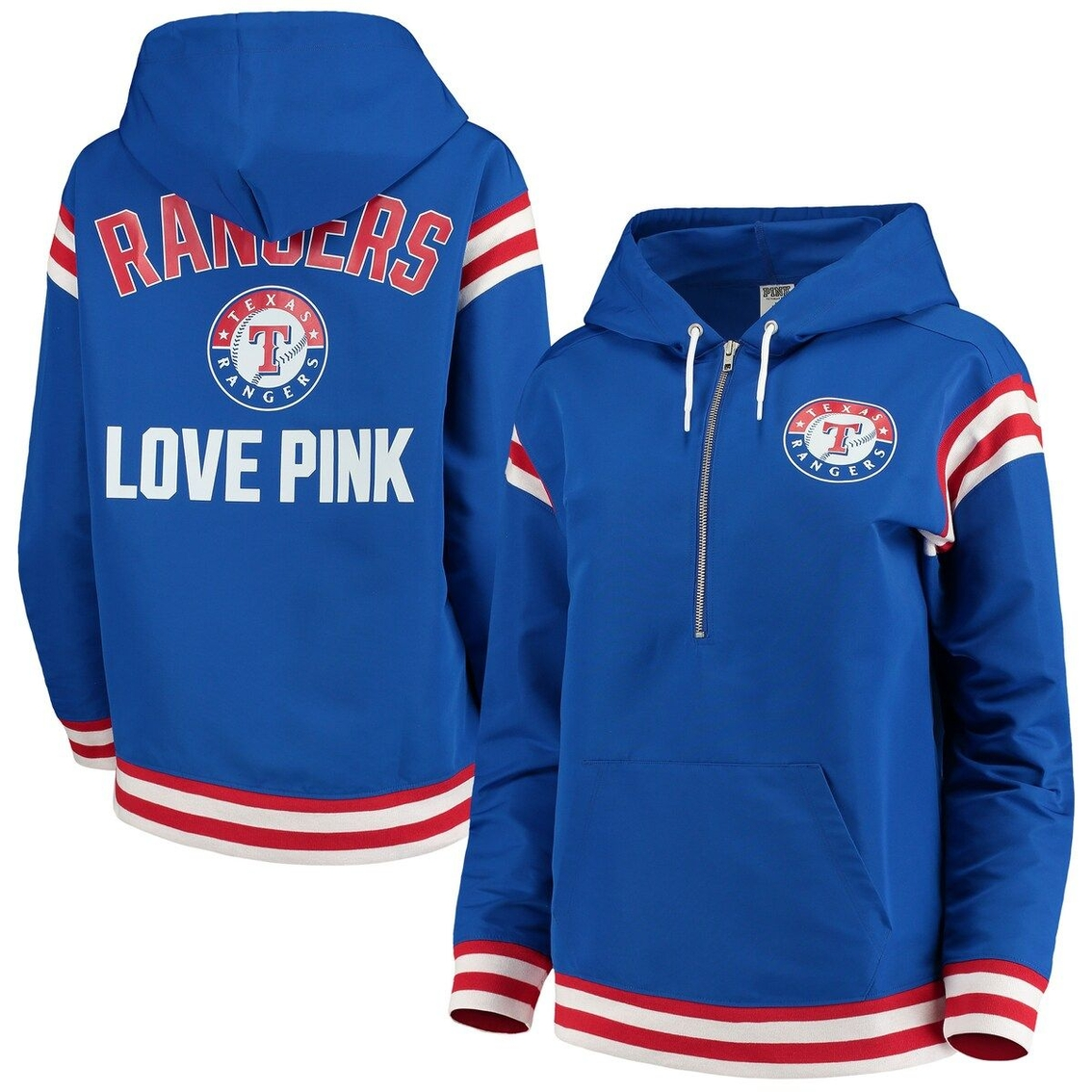 - Prepare for rainy Texas Rangers game days with this special Anorak half-zip pullover jacket from PINK by Victoria’s Secret.