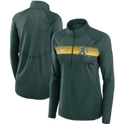 Nike Women's Green Oakland Athletics Seam-To-Seam Element Half-Zip Performance Pullover Jacket