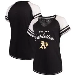 Soft As A Grape Women's Black Miami Marlins Curvy Colorblock Tri-Blend Raglan V-Neck T-Shirt
