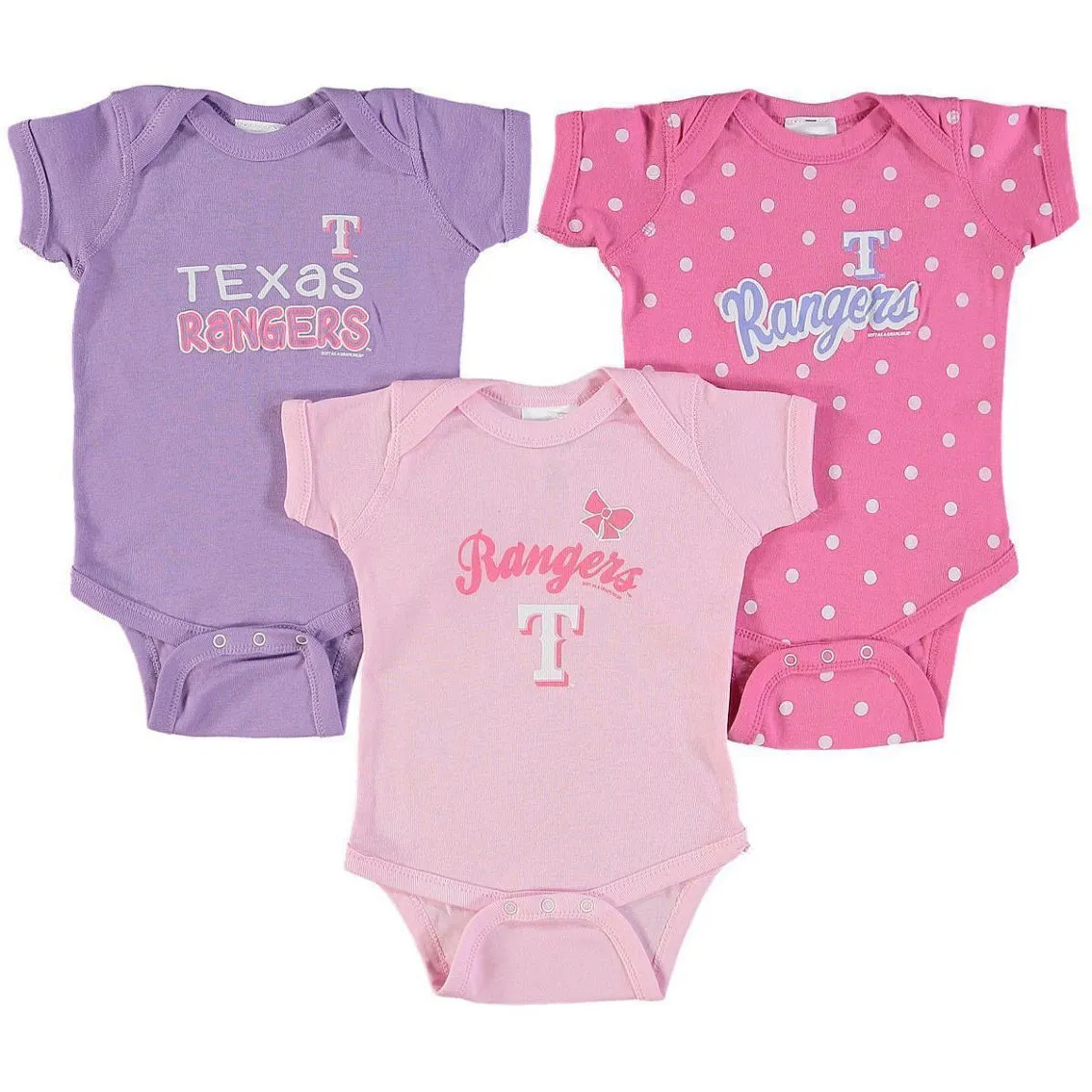Soft As A Grape Girls Infant Pink/Purple Texas Rangers 3-Pack Rookie Bodysuit Set