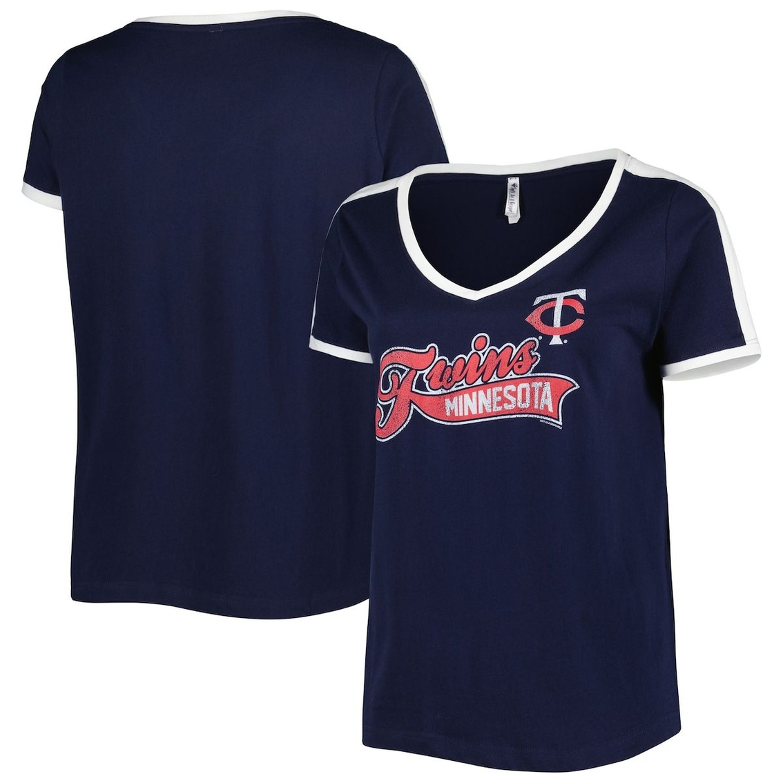 Soft As A Grape Women's Navy Minnesota Twins Plus Size V-Neck T-Shirt