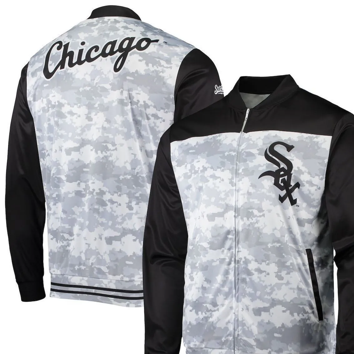- Layer up as you enjoy watching your favorites in this Chicago White Sox full-zip by Stitches. This lightweight jacket features bold Chicago White Sox graphics on top of a camo pattern for a dedicated fan getup. A stand-up collar supplies a bit of extra coverage in case of chilly weather, and side slip pockets tuck your small items away.