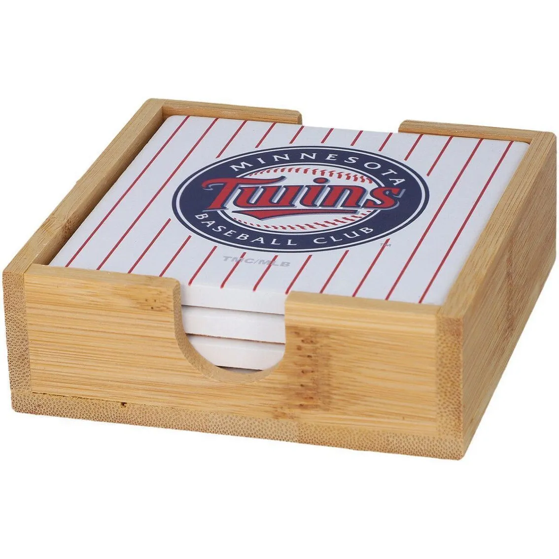 - Keep your furniture safe while cheering on the Minnesota Twins with this Team Uniform coaster set. These stain-resistant coasters feature bold printed graphics that display your fandom in an understated way. Additionally, the set comes with a wooden caddy to keep everything together when not in use.