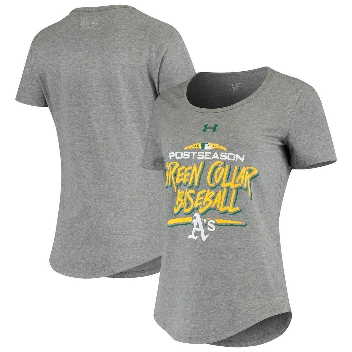 - Watching the Oakland Athletics go for a win always gets you excited. Make sure everyone knows that by wearing this 2018 Postseason Team Nation Tri-Blend Scoop Neck Performance T-Shirt from Under Armour. It features authentic Oakland Athletics graphics and moisture-wicking HeatGear technology that regulates body temperature to help you stay comfortable.